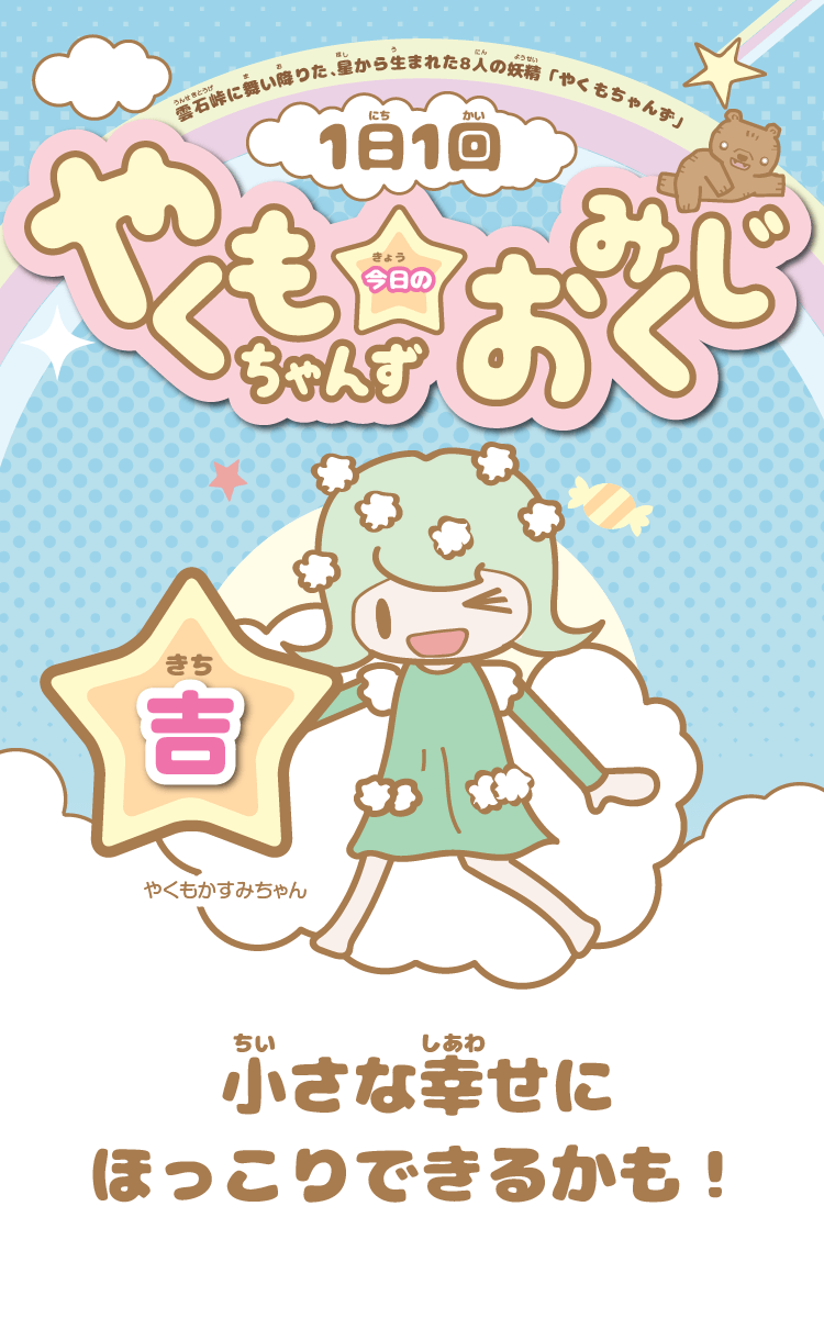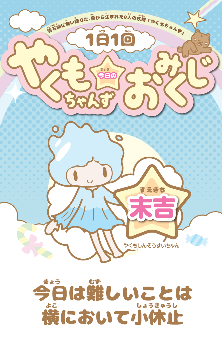 おみくじの内容は24時間変わりません。 変更したい場合は リセットボタンを押してください。 ↓